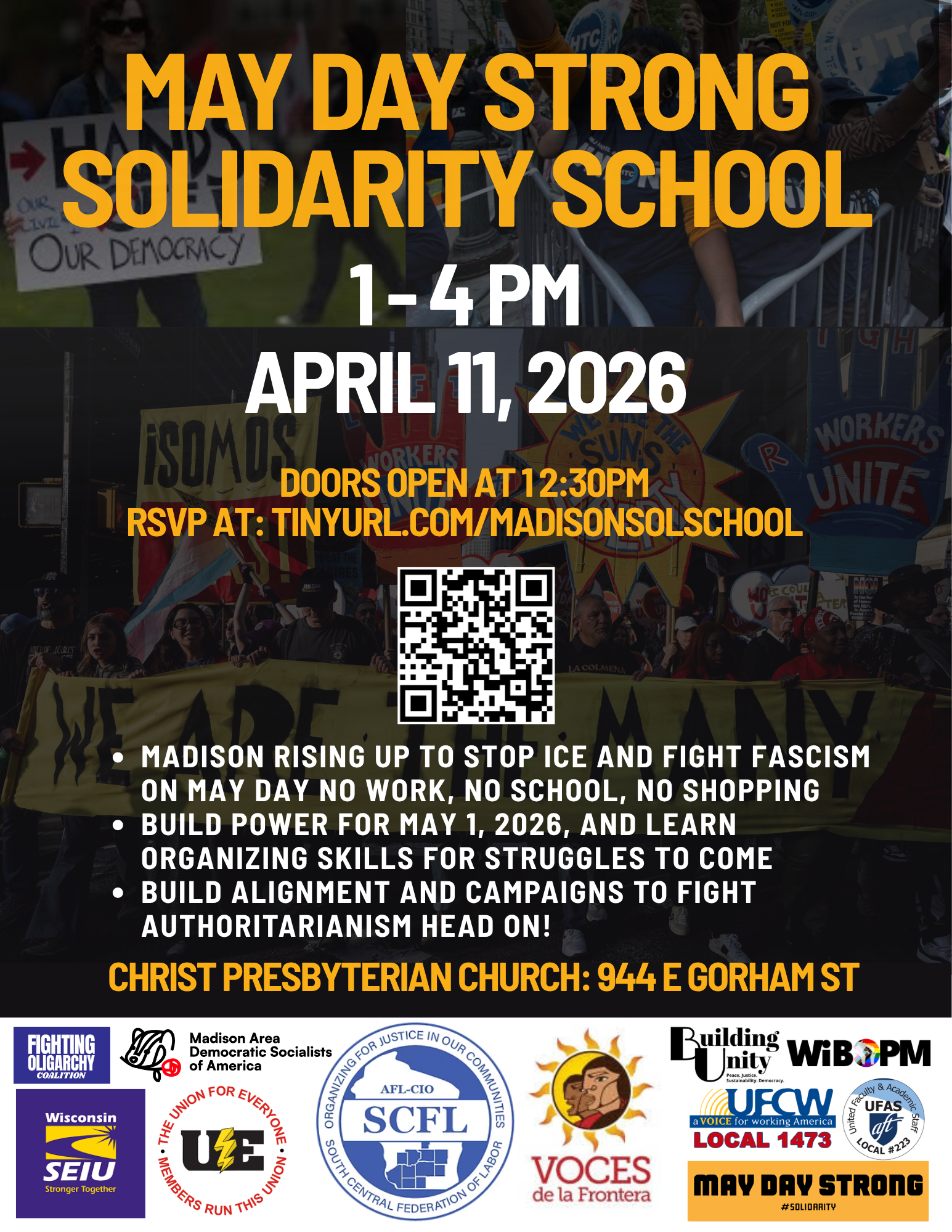 Madison Area DSA members and all workers in Madison are turning out to the May Day Strong Solidarity School!