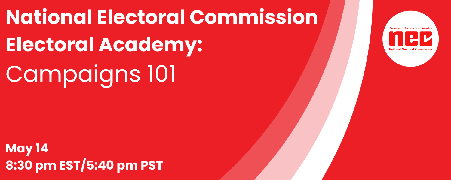 This training will give DSA members who haven't planned a campaign the basis to bring one together — whether your chapter is totally new to electoral work, or you've been an active campaign volunteer looking to expand your leadership knowledge.