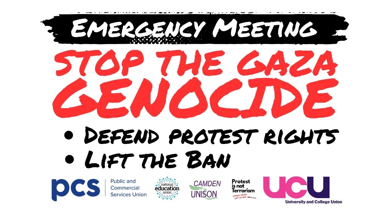 Meeting initiated by Camden Unison in conjunction with London Region UCU, PCS, NEU and the Protest is not Terrorism open letter organisers