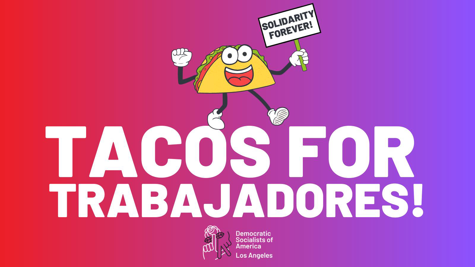 DSA-LA is proud to support workers and unions in LA fighting for their rights and to protect their communities! After showing up with over 2,000 free tacos at the UNITED FOR LA RALLY on March 15th, our members are ready to keep showing our solidarity! Come join us at the picket line at Florence Nightingale Middle School on Wednesday, 22 March 2023. Bring your signs and your chants, and get ready to support our fellow working class Angelenos!