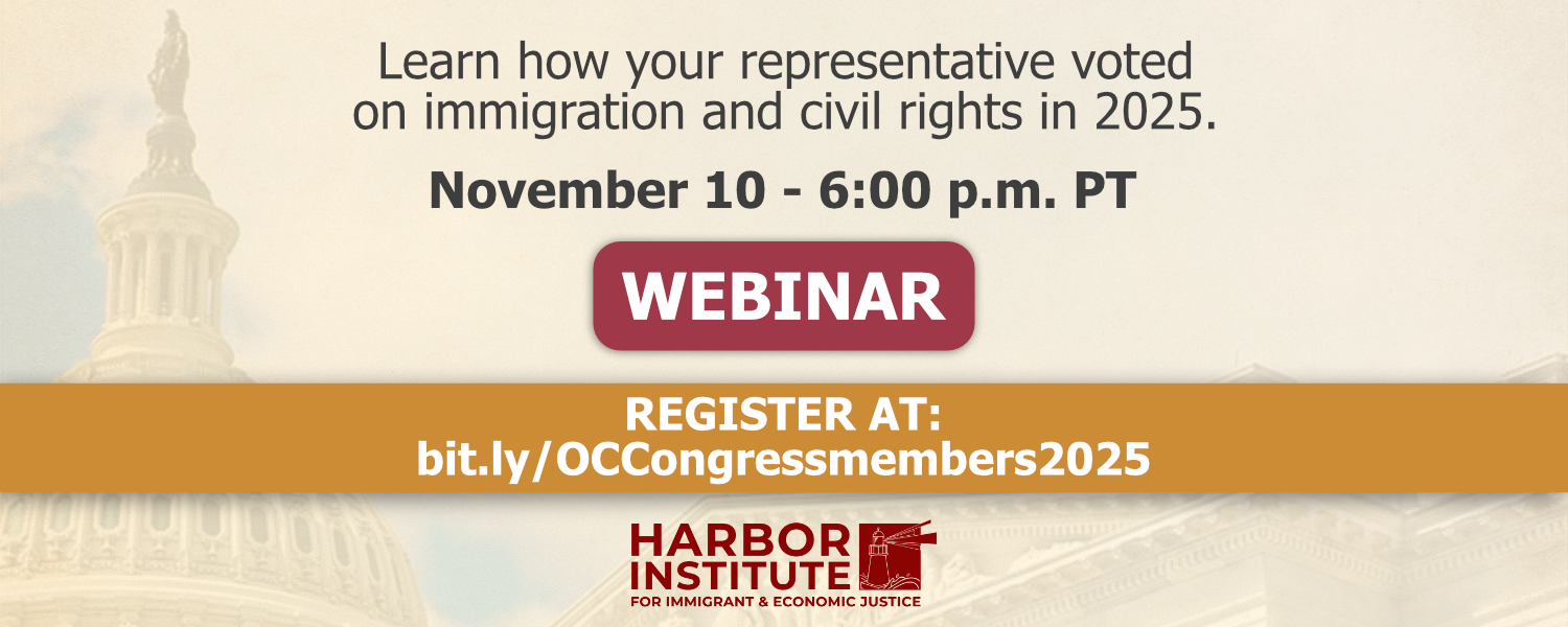 On behalf of the Harbor Institute for Immigrant and Economic Justice, we are pleased to invite you to join us for a one-hour webinar where you'll learn which O.C. Congressmembers are immigration heroes, and which are immigration zeroes.
