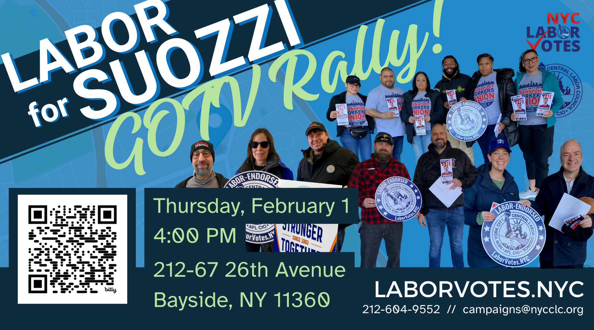 Join NYC Labor Votes on Thursday, February 1st to rally and get out the vote in support of the labor-endorsed candidate for Congressional District 3 - Tom Suozzi.
