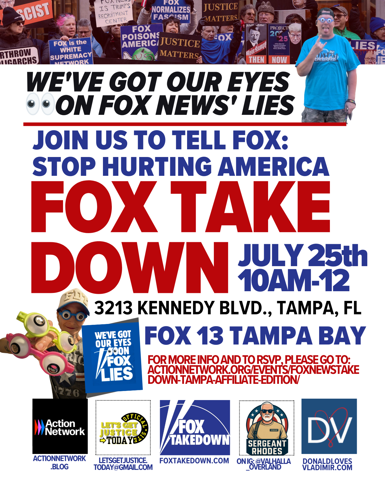 Please join us in Tampa to push back against the most destructive immigrant to ever hit our shore...Rupert Murdoch- and to tell FOX13 that We've got our EYES on the Lies, and we want Fox13 to STOP FUNDING FOX & Rupert Murdoch's propaganda campaigns!