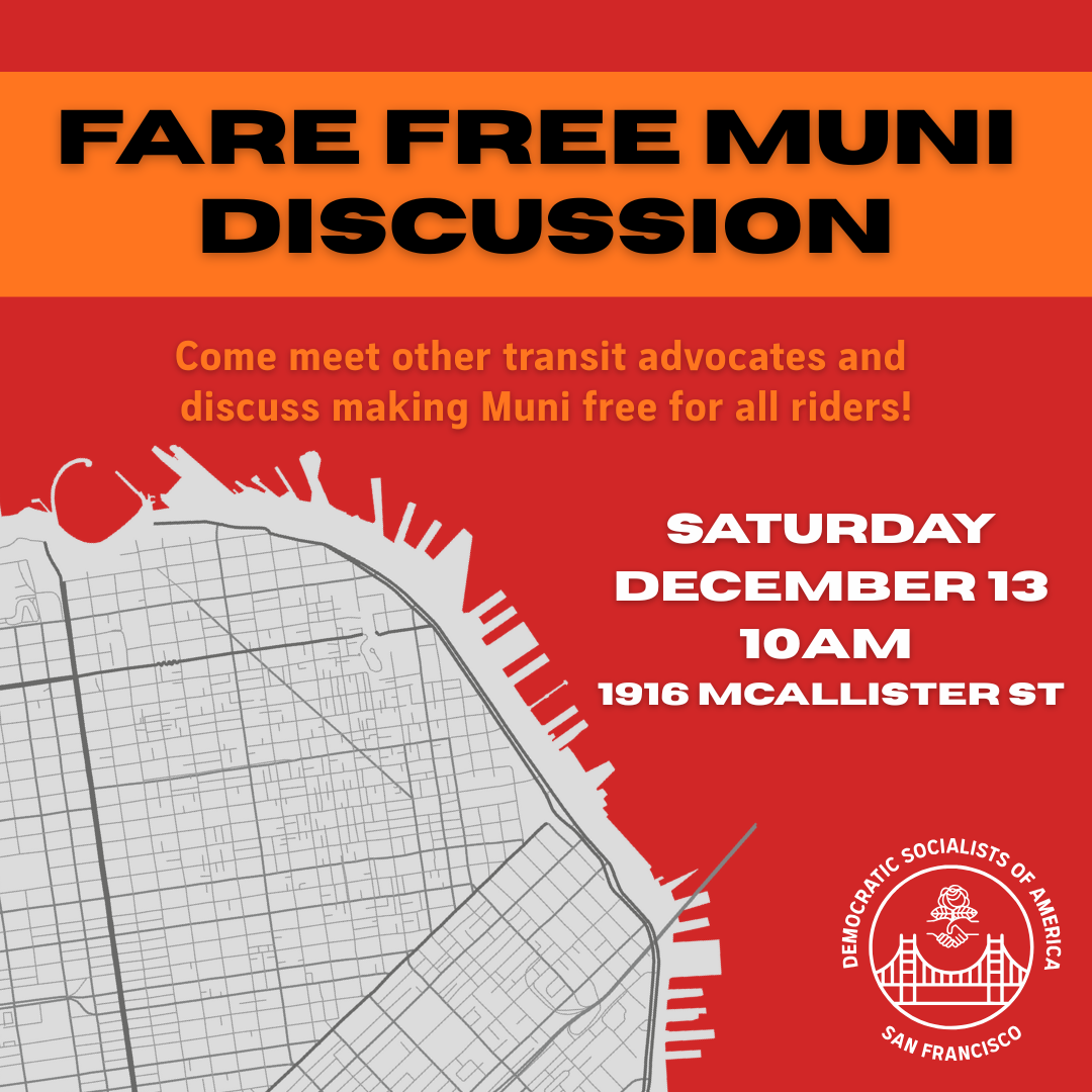 Tired of SF hiking fare prices? Sick of fare enforcers disrupting your bus ride? Come discuss the benefits and feasibility of making Muni fare free with fellow transit advocates!