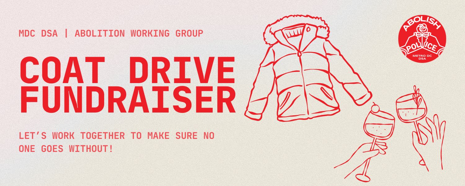 Metro DC DSA’s Abolition Working Group is hosting our first-ever coat drive as a follow-up to our backpack distribution (where we gave out over 300 backpacks filled with essential school supplies!). Your support will directly purchase coats and other cold weather accessories to be distributed to DC residents ahead of winter to make sure that everyone stays warm.
