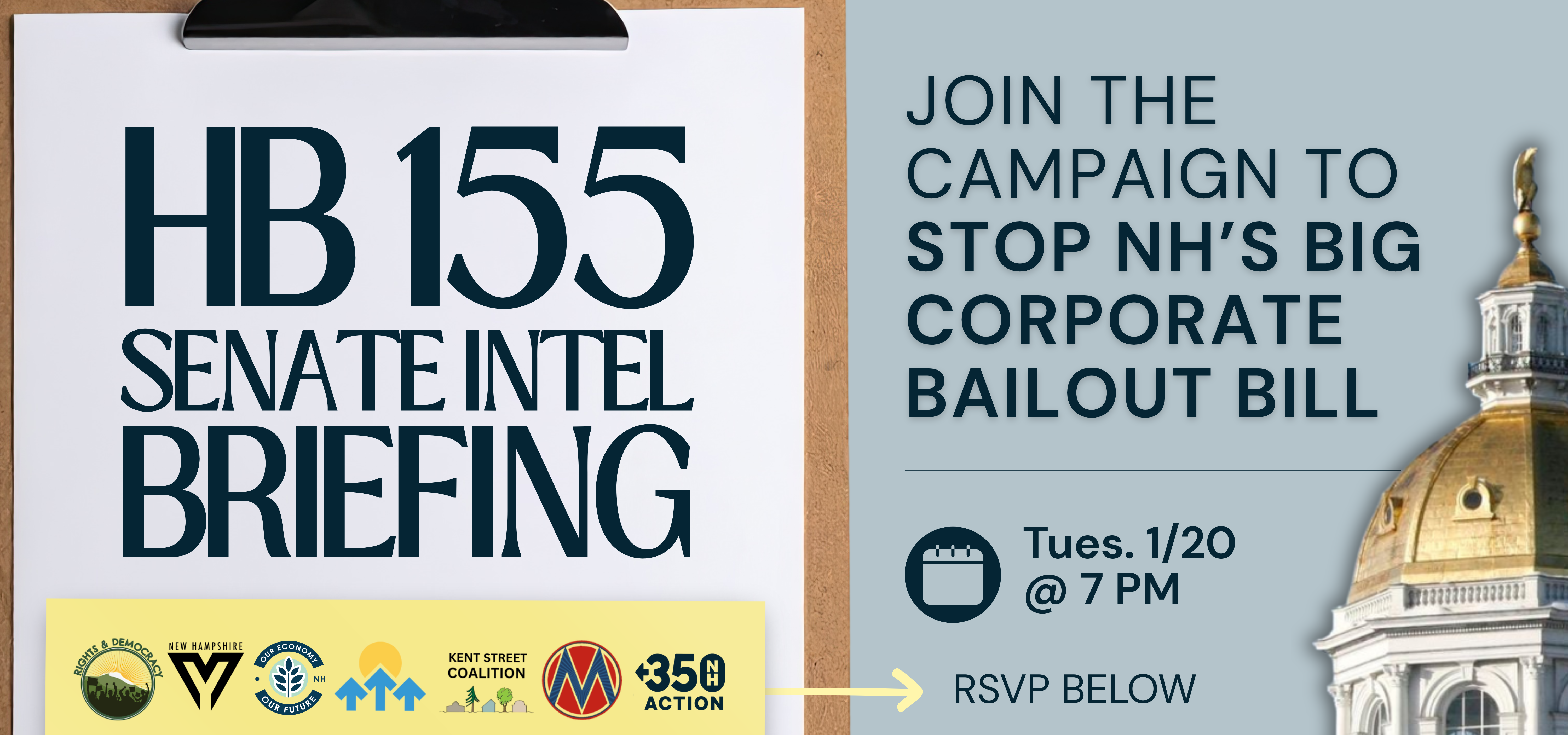 Over the last couple months we have been fighting back against HB 155; a giveaway to the richest corporations at the expense of the NH taxpayer. If the bill passes and goes to the Senate, there will be no time to waste to dial up the pressure for state senators to vote NO on this bill.