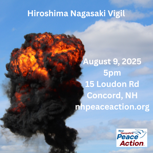 took place in Japan in 1945 and to rededicate ourselves to working for a more peaceful and just future for all. We will meet at the shore of the Merrimack River at 15 Loudon Road, Concord (behind Everett Arena) to read the names of some of the people killed in the bombings as we lay flowers in the river. You may want to bring a snack, some cut flowers, your singing voice, and/or a chair.