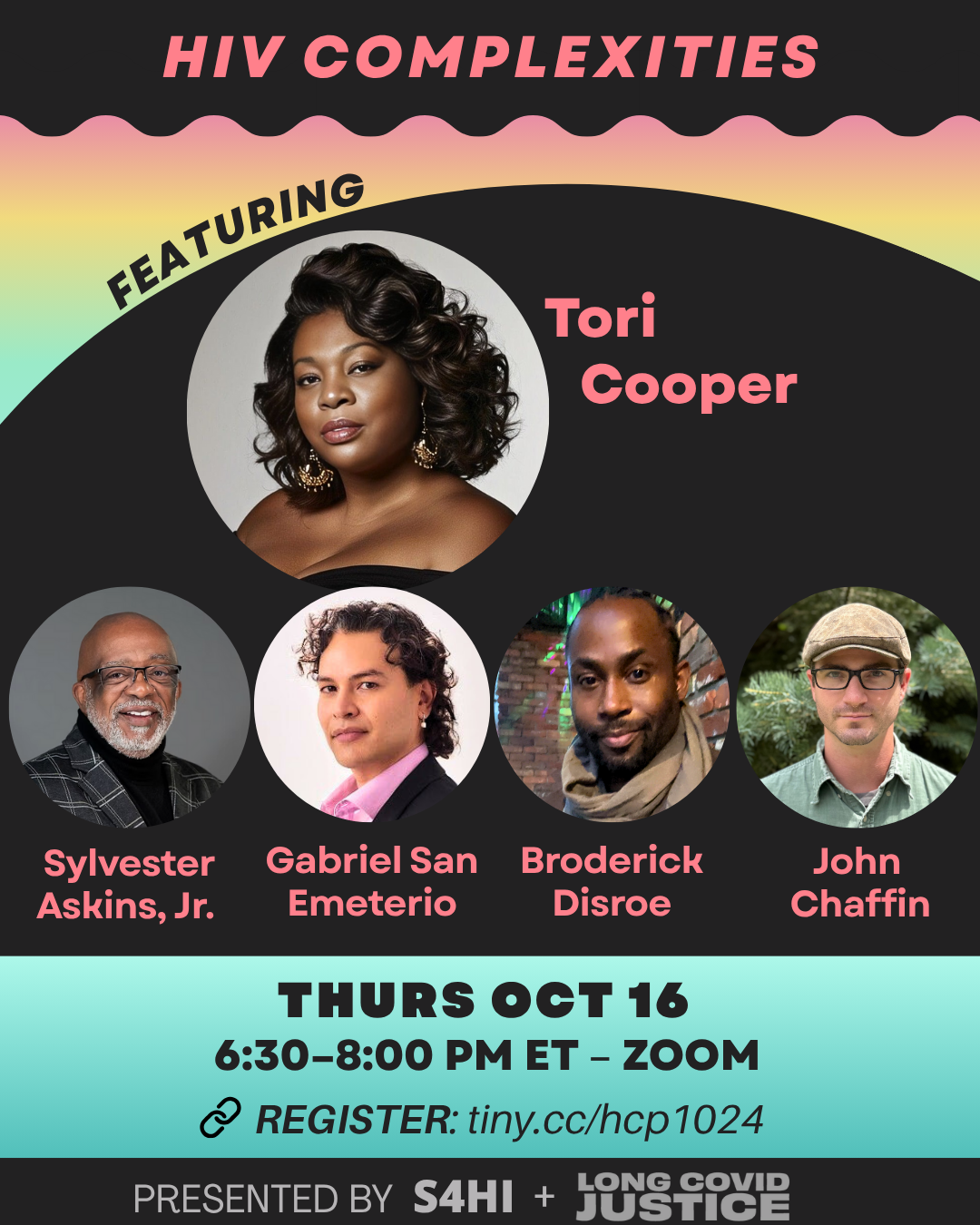 Join us for a conversation that spans generations and settings, both urban and rural, North and South (U.S.). You’ll hear from community leaders working at the intersection of HIV, chronic illness, and disability justice. We’ll talk about living with HIV and dealing with complex chronic conditions, which often share symptoms like chronic fatigue, pain, cognitive dysfunction, brain fog, and memory issues.