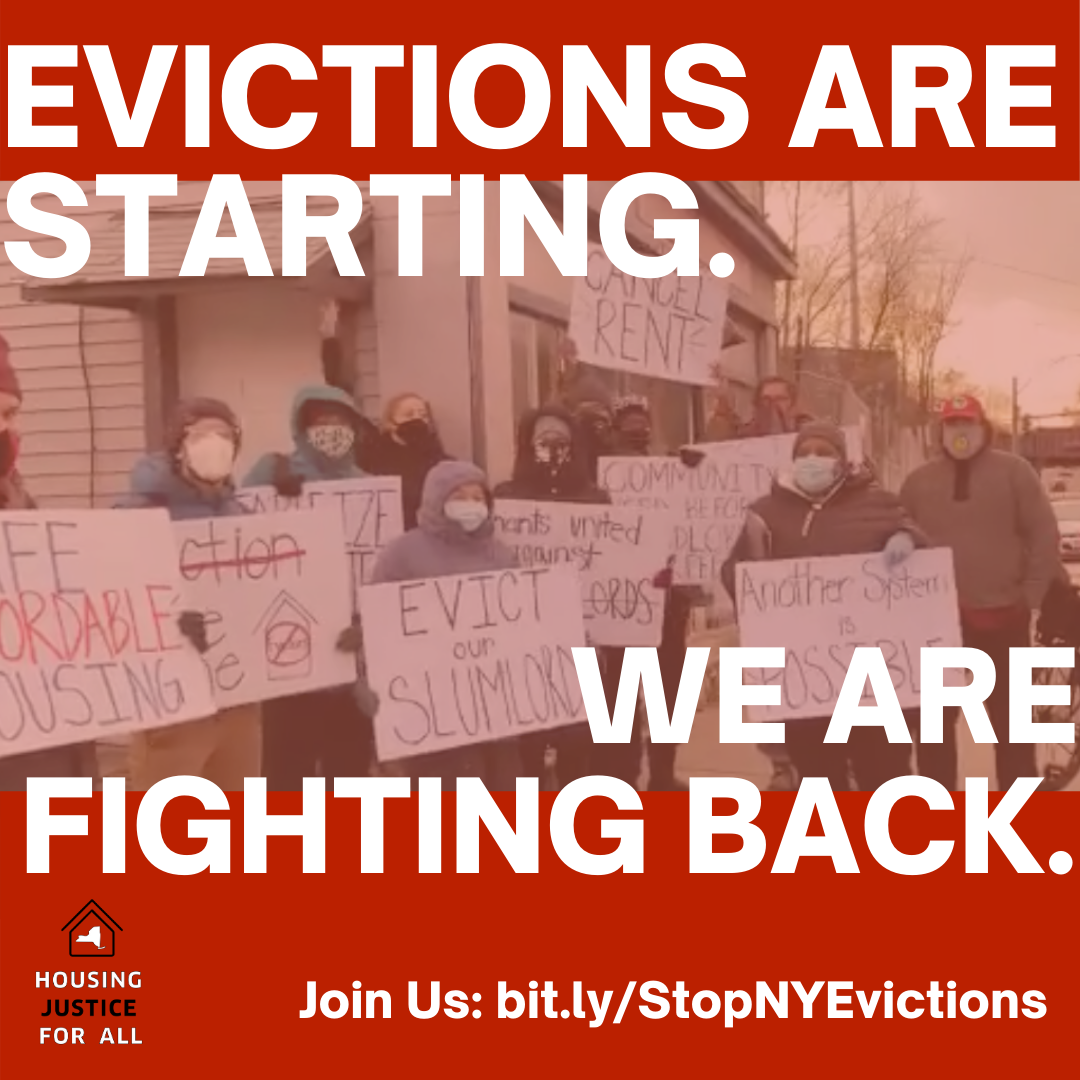 Join Housing Justice for All for mass member meeting to discuss the eviction crisis and how we are fighting back for an #EvictionFreeNY and budget justice!