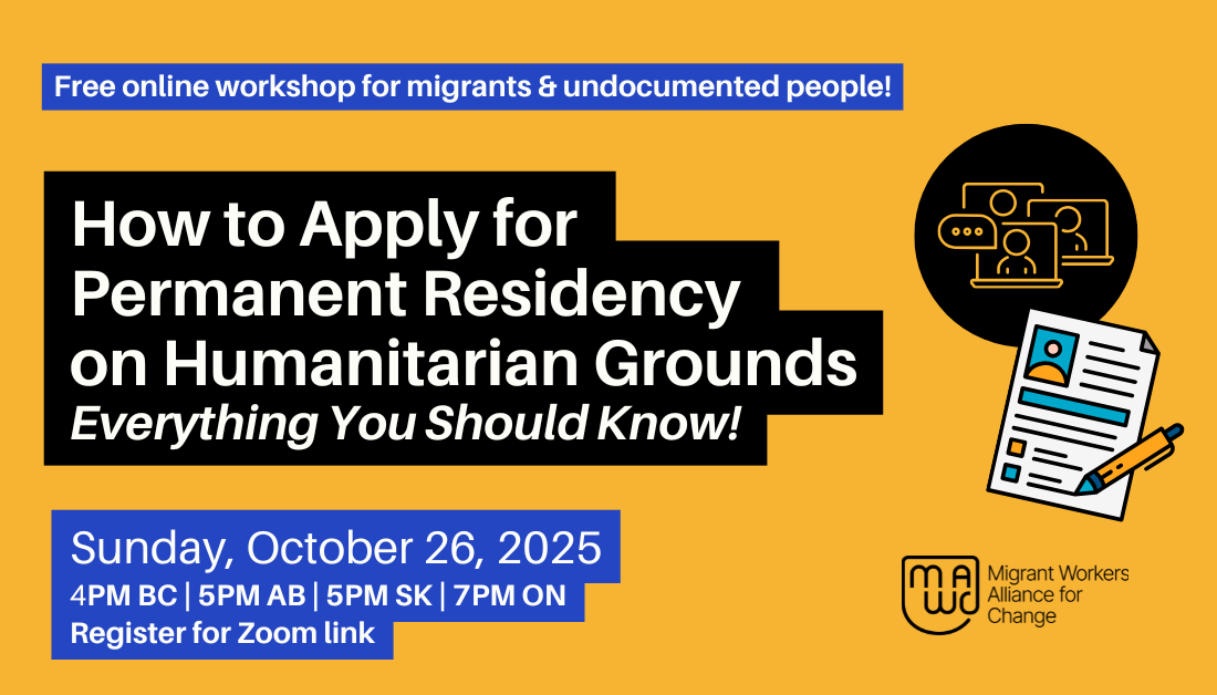 Are you planning to apply for permanent residency through Humanitarian and Compassionate (H&C) grounds? Or do you need help updating your application while you wait for a decision? Join us on Sunday, October 26 for an online workshop where we will guide you through everything you need to know — from eligibility to documentation and next steps.