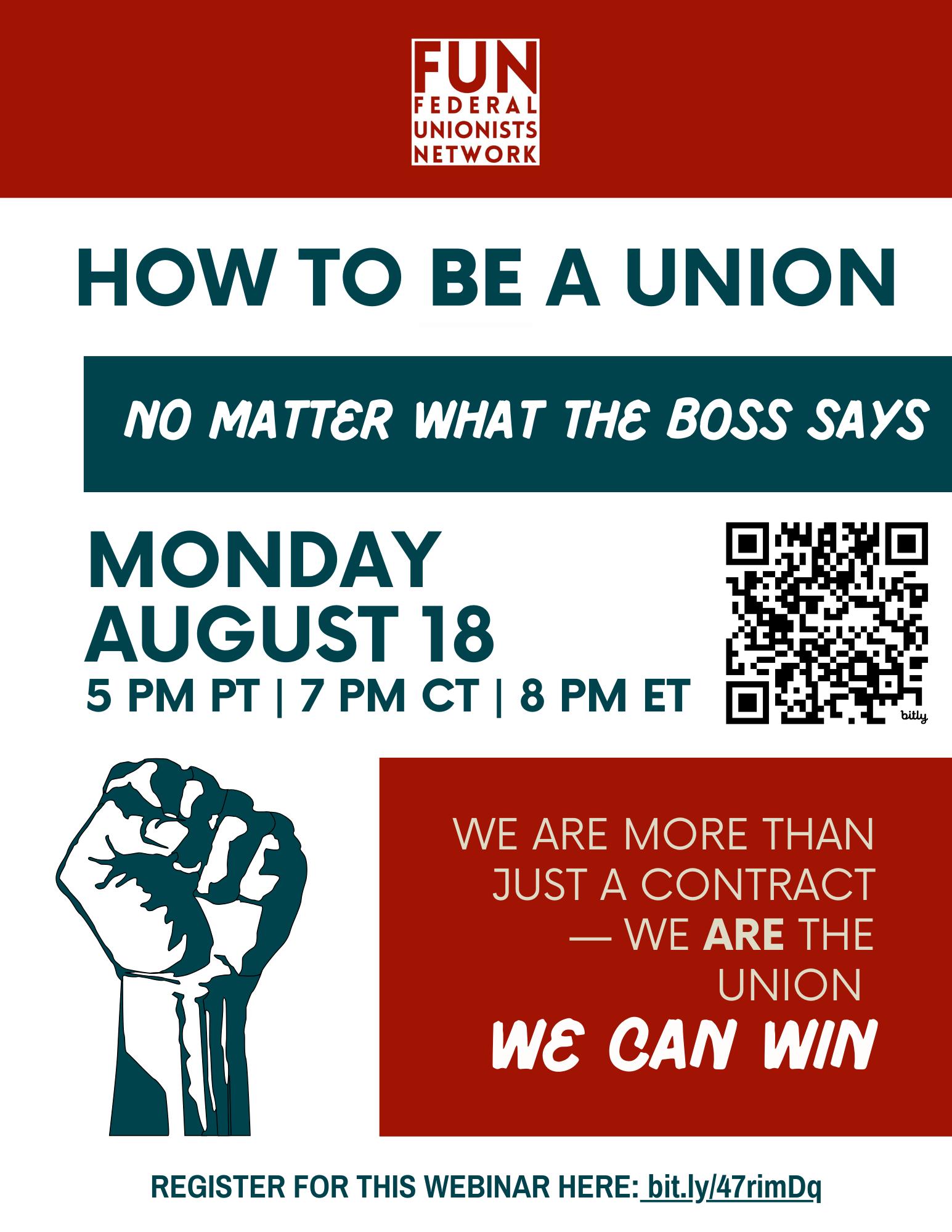 The Trump administration thinks canceling contracts will break us—but we are more than a contract. We are the union. Our power comes from collective action, staying connected, and defending the public good. Join FUN’s training to learn how to organize, protect your rights, and take action without a contract.