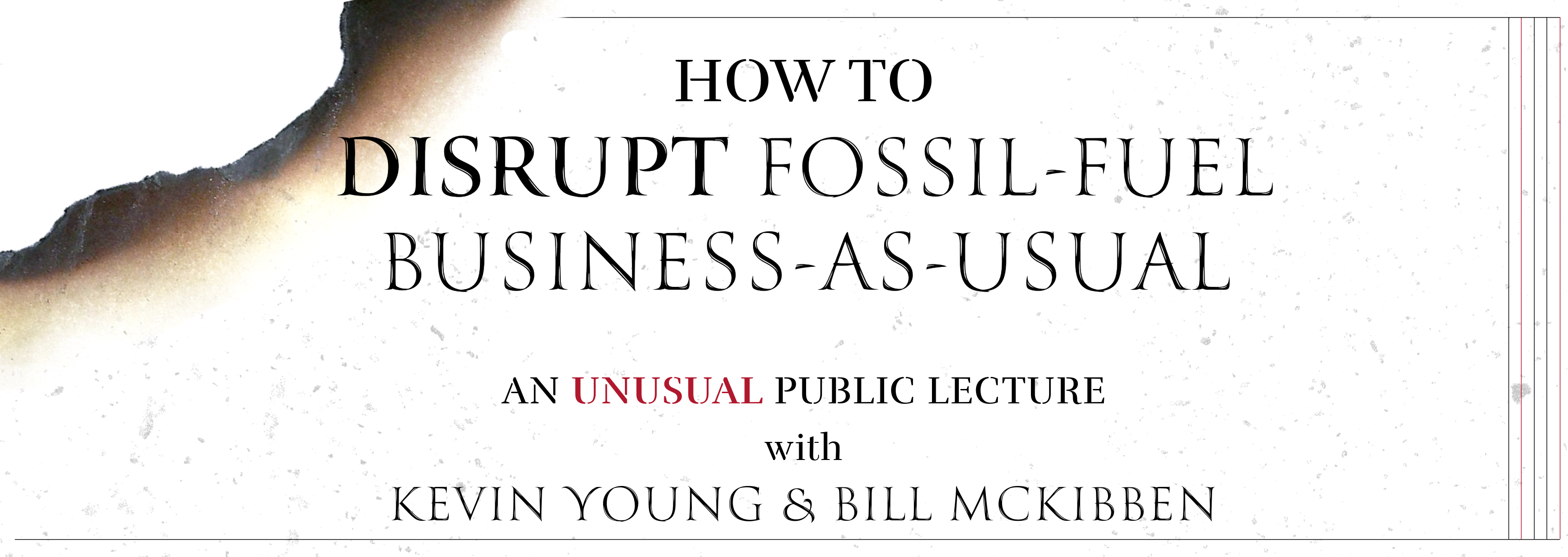 Join us on Friday, May 2, for an unusual public lecture: “HOW TO DISRUPT FOSSIL-FUEL BUSINESS-AS-USUAL.”