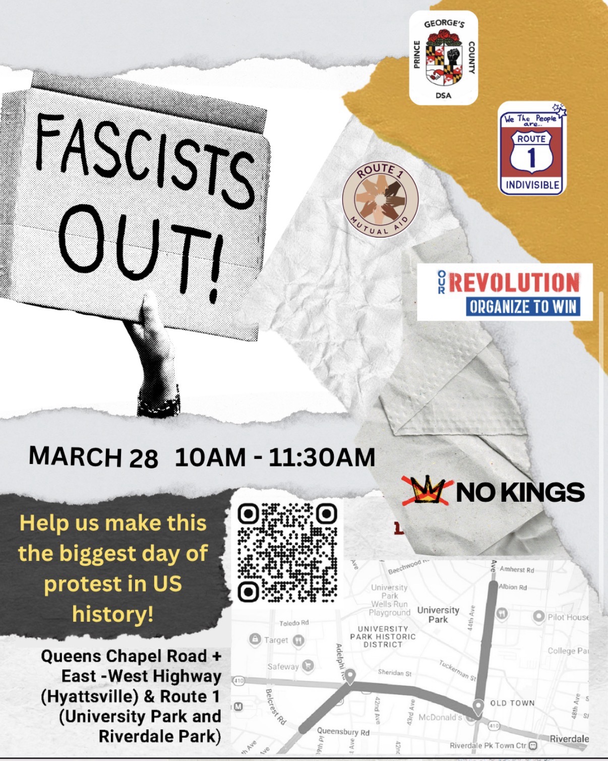 In partnership with Indivisible Route 1 Corridor, Route 1 Mutual Aid, and Our Revolution, we will be joining the NO KINGS 3: Celebrate our Strength with a Resistance Sign Wave at the intersection of Rt. 1 and 410. There will be plenty of time to Metro downtown afterwards to the No Kings March at 1 PM as well!