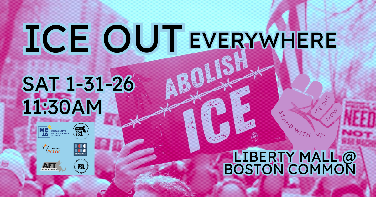 Join Mass 50501, UU Mass Action, Indivisible Mass Coalition, PSL, MEJA, and many more as we come together to: