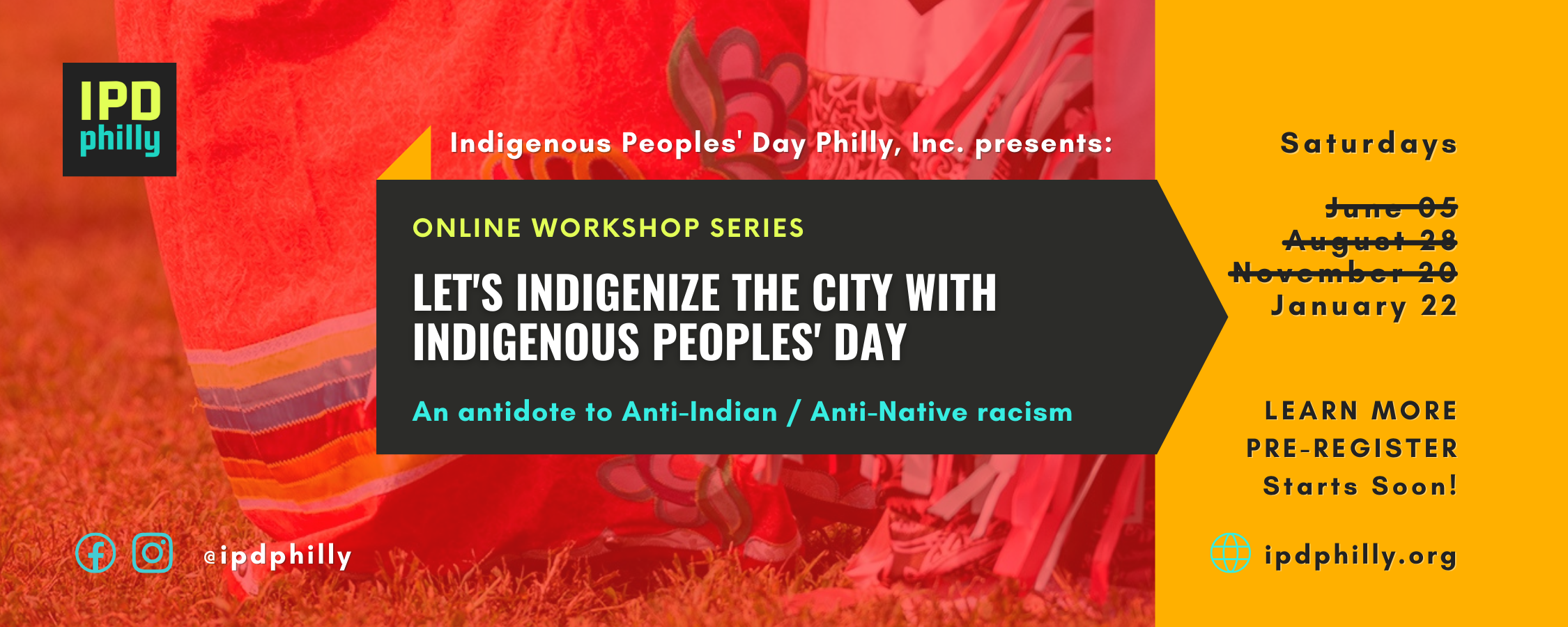 SATURDAY, JUNE 5TH, 1 PM - Topic: Lenni-Lenape Today + Let's prepare for IPDPhilly2021SATURDAY, AUGUST 28, 1 PM - Topic: Taino Today + Let's prepare for IPDPhilly2021SATURDAY, NOVEMBER 20, 1 PM - Topic: Urban Native Identity and others + Let's reflect on IPDPhilly2021