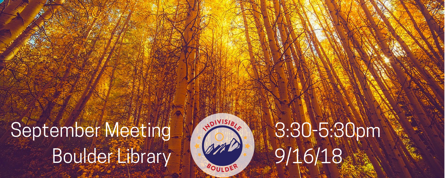 Join Indivisible Boulder for our monthly meeting at the Boulder Public Library from 3:30-5:30pm.