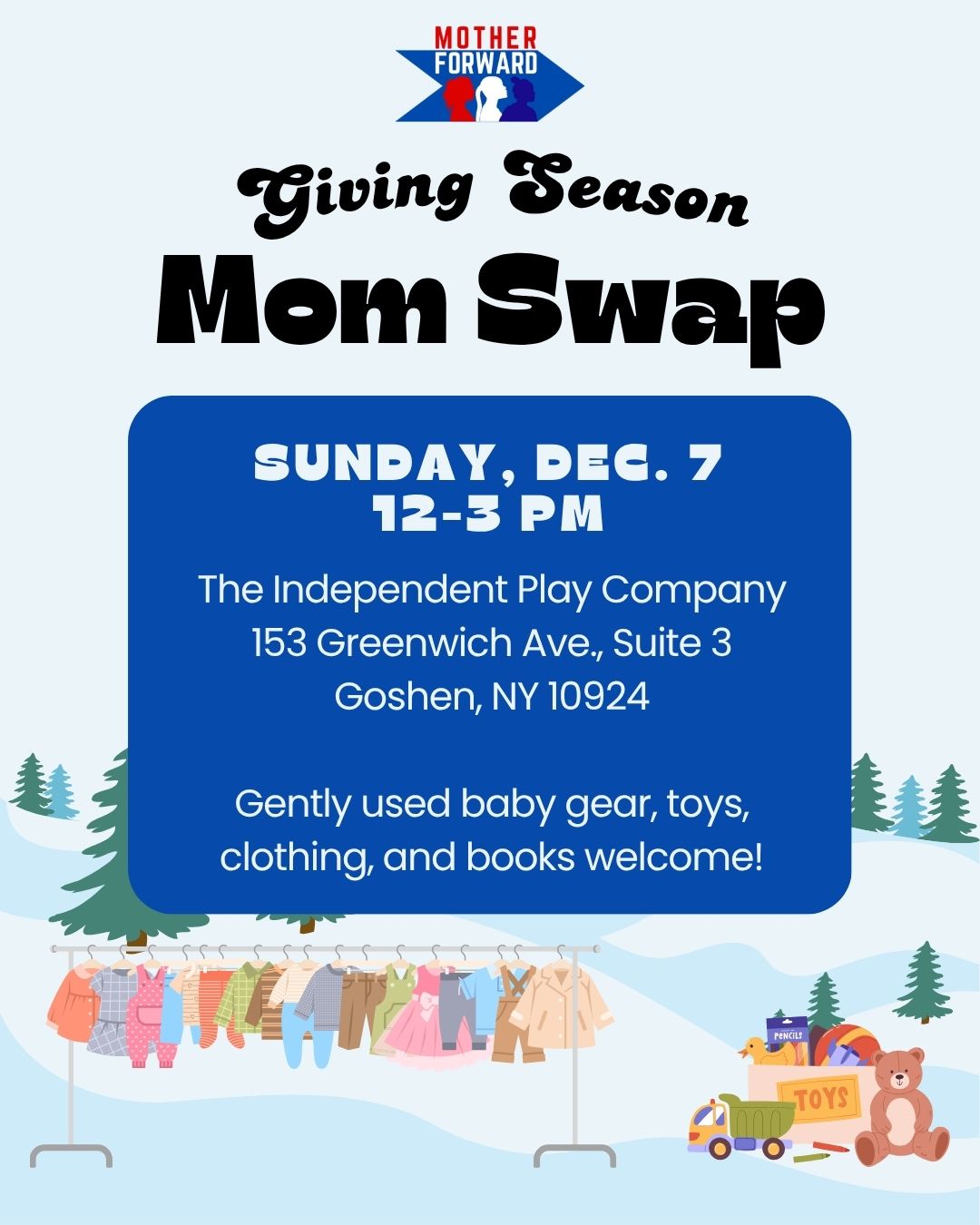 Join us! Sunday, December 7 | 12–3 PM at The Independent Play Company located at 153 Greenwich Ave., Suite , Goshen, NY 10924