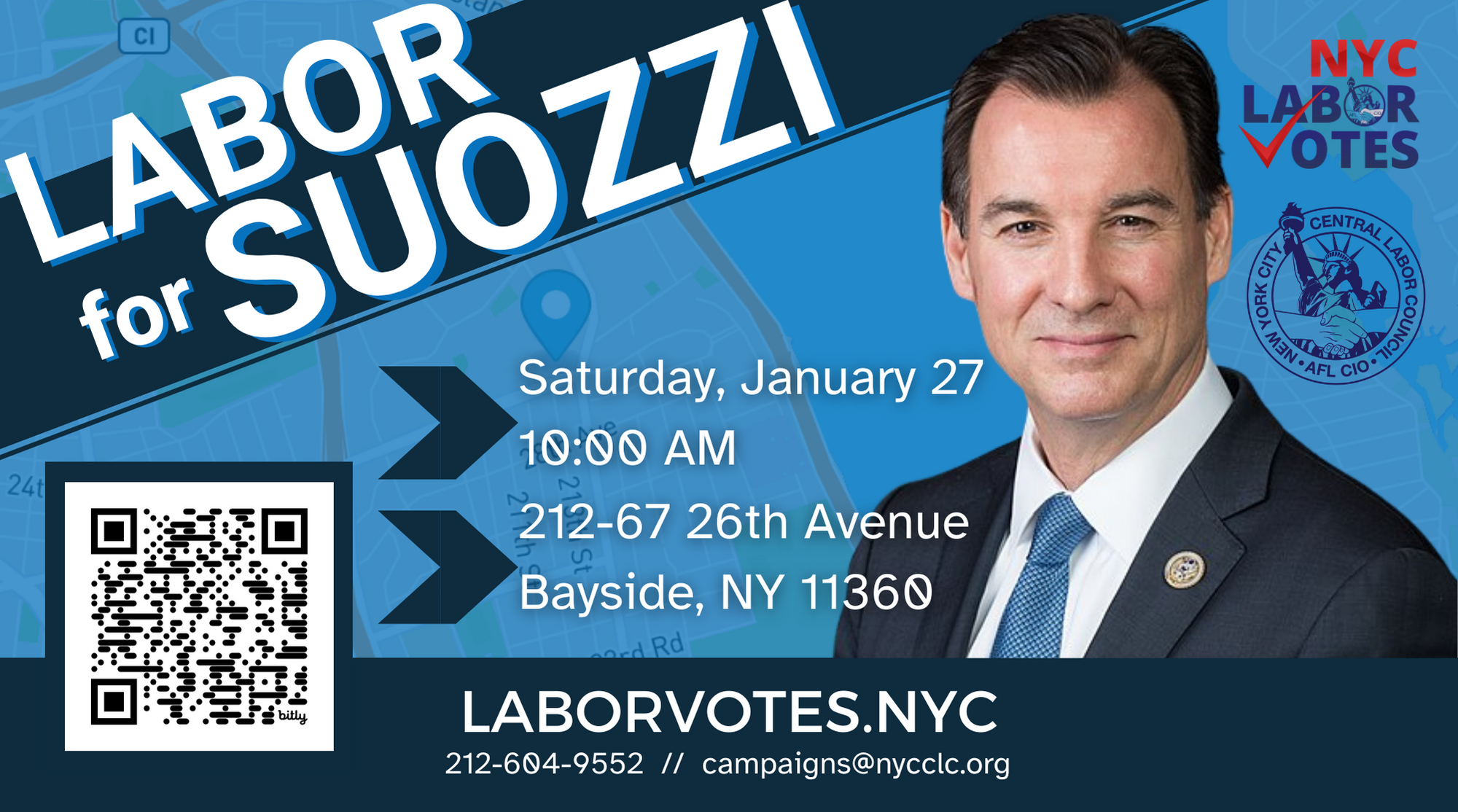 Join NYC Labor Votes, Saturday, January 27th at 10AM as we continue our efforts to support the labor-endorsed candidate for Congressional District 3 - Tom Suozzi.