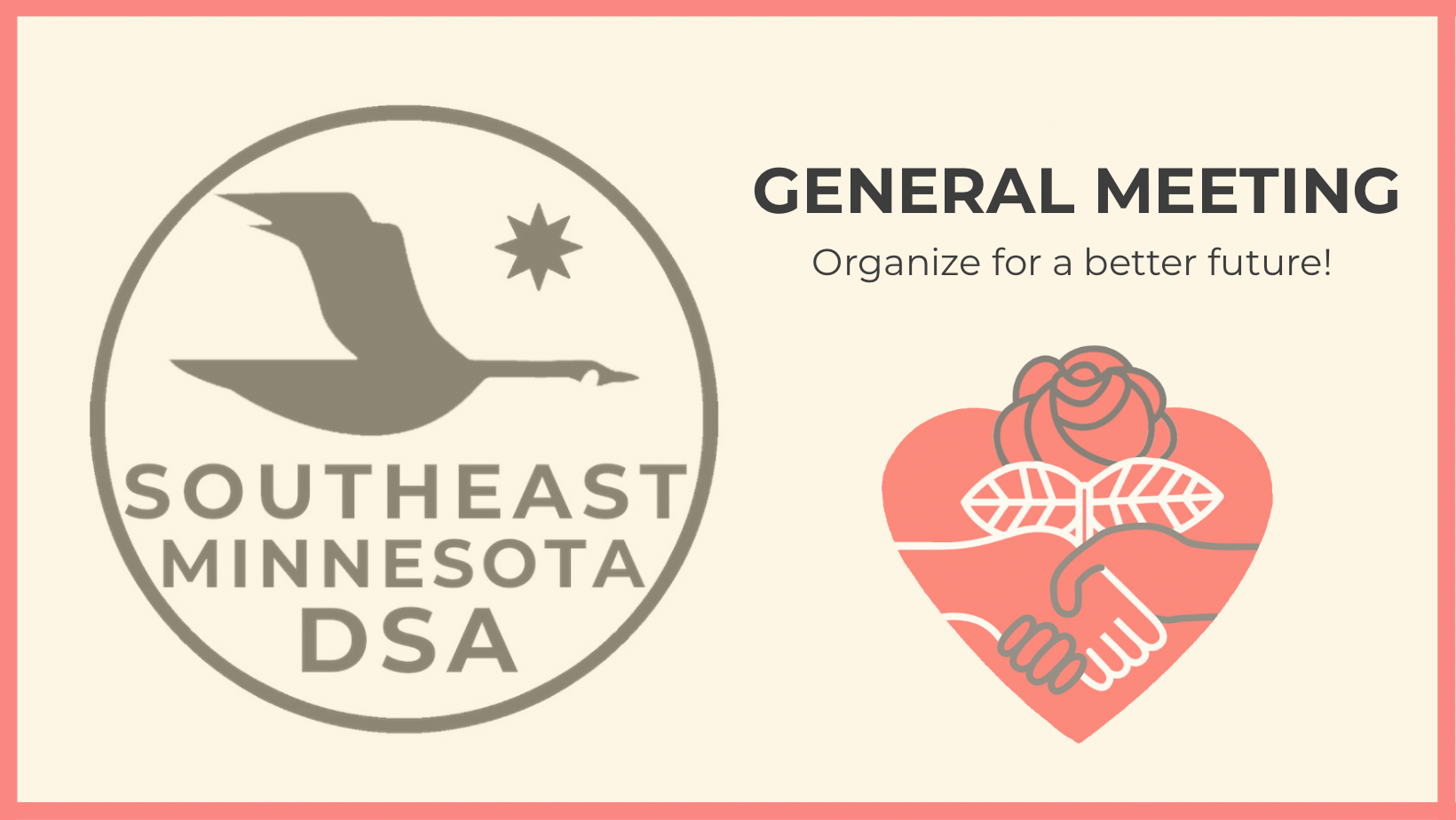 Southeast MN DSA General Meeting happens every second Wednesday of the month.