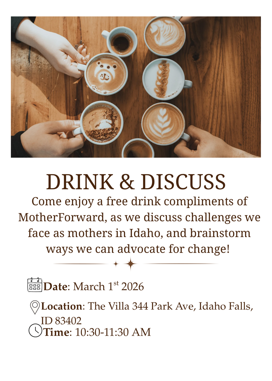 Join us for Drink & Discuss — a chance to connect with other moms, enjoy a free drink (on us!), and talk about the challenges weβre facing as mothers in Idaho. Weβll also brainstorm practical ways we can advocate for change together.