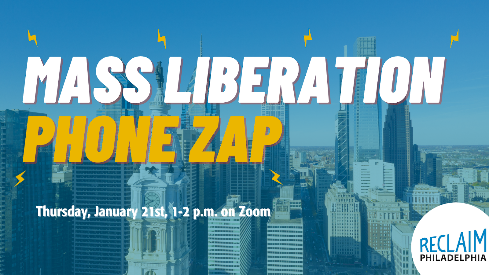 Our Mass Liberation Task Force is hosting the first Phone Zap of 2021 on Thursday, January 21st from 1-2pm.