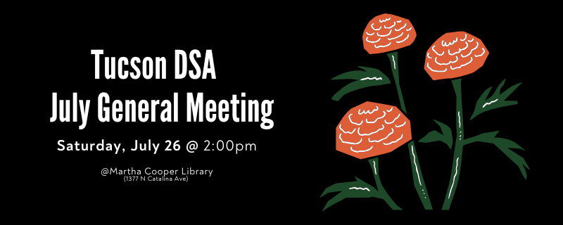 Join Tucson DSA for our July General Meeting! You don't have to be a member, everyone is welcome!