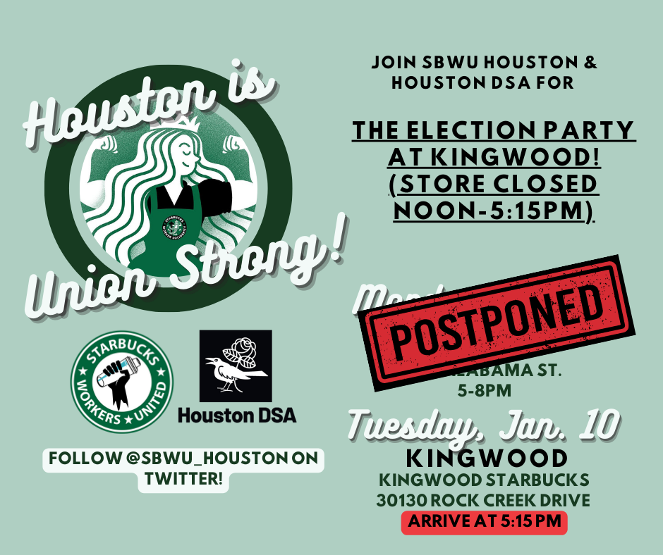 The Workers of Starbucks will be having their union election this afternoon, and we will be showing up to celebrate! Come order a Union Strong beverage and celebrate this victory with Starbucks Workers.