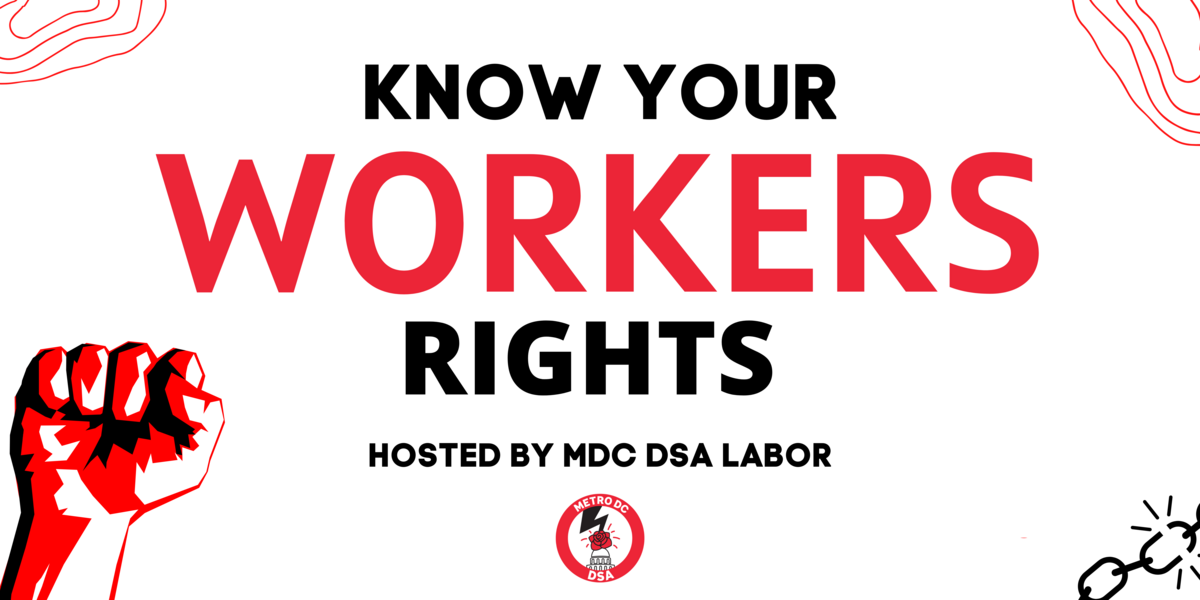 Join the DSA Labor Working Group and the Peoples' Parity Project for our "Know Your Rights" workshop on the service sector and tipped workers. This workshop is run by experienced union organizers and labor lawyers from the DC metro area. This training will cover some of the most common labor violations that take place in the service sector by bosses and what key legal protections workers have to fight back.