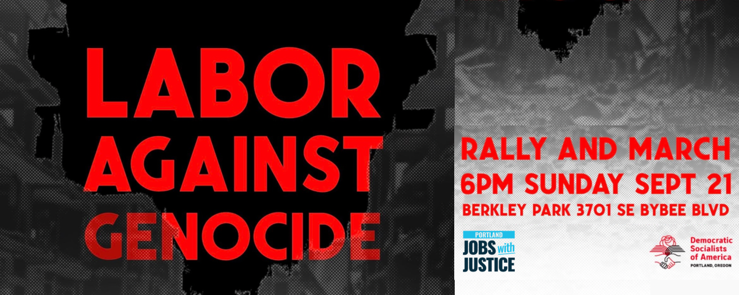 Stand with workers, students, and communities in Palestine and across the globe. Show that Portland’s labor movement will not stay silent in the face of genocide.