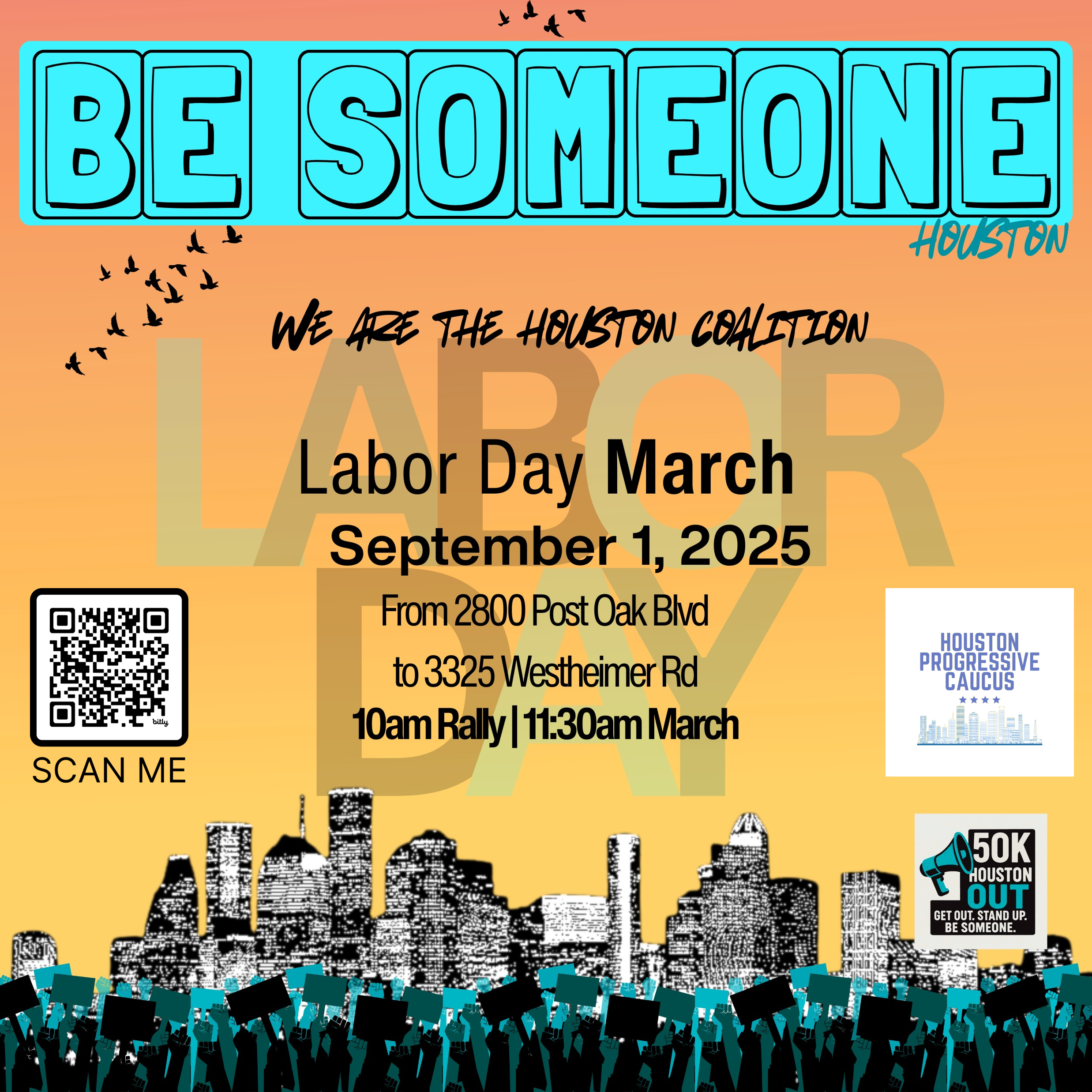 This Labor Day, we’re calling on 50,000 Houstonians to march from Waterwall Drive to Lamar High School to honor the labor and love that built this city—and to say NO to billionaire greed and creeping dictatorship.