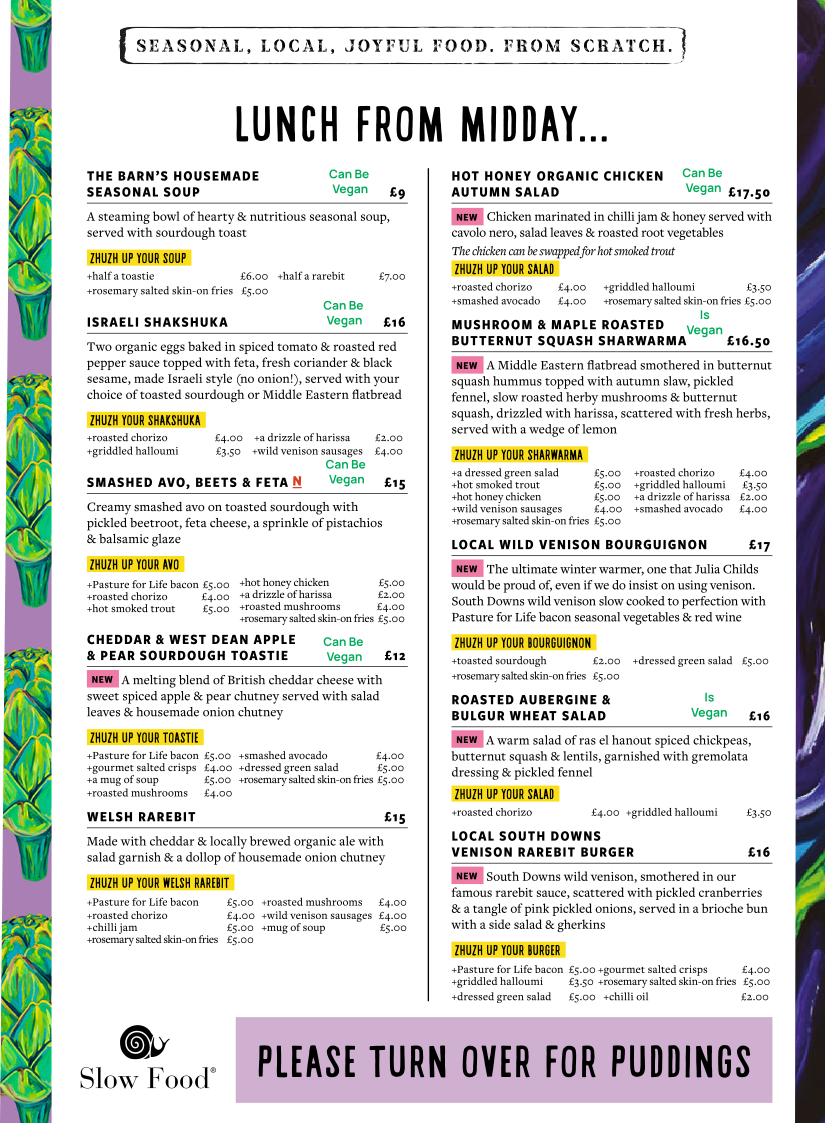 We are holding the event at The Barn which has a great selection of Vegan, Vegetarian and local venison meat options.