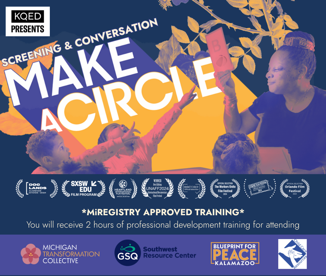 We invite child care teachers and providers throughout Kalamazoo to join us for a special screening of "Make a Circle" followed by meaningful dialogue about strengthening support systems for child care professionals in our community. This gathering creates a dedicated space for educators to come together, share experiences, and identify critical gaps in teacher support that affect our field. Together, we'll explore how we can better advocate for and support one another as a coalition of professionals.