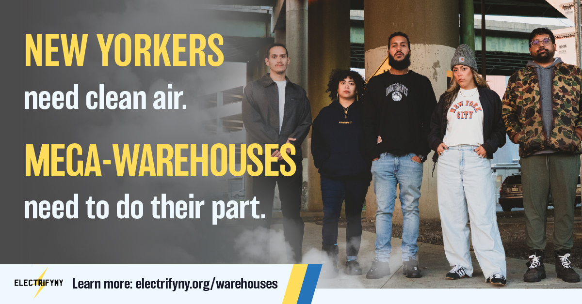 Giant mega- warehouses have sprung up rapidly across New York, generating massive amounts of pollution from the many diesel delivery trucks that come and go from them every day. This pollution is linked to asthma in kids, heart disease, cognitive problems, and even early death. One in four New Yorkers now live within a half-mile of a mega-warehouse.