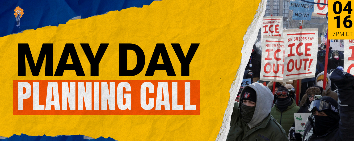 Join us on Thursday, April 16th, at 7:00 pm ET for our May Day Community Planning Call as we gear up for May Day and the vital work of bringing our people into the streets. We'll focus on how to effectively reach our peers, grow our mobilization efforts, and build momentum for one of the most powerful days of collective action and resistance.