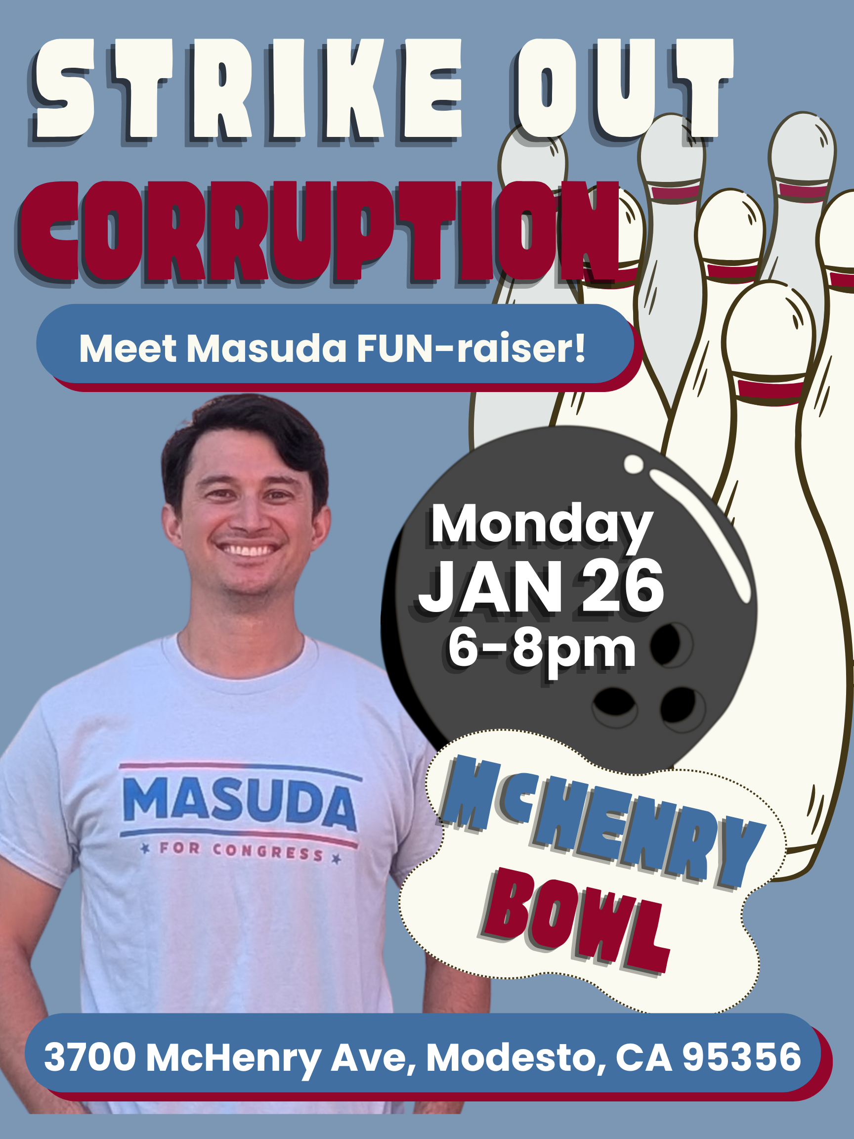 Join Michael Masuda for a Meet the Candidate Bowling Competition with local guest bowlers!
