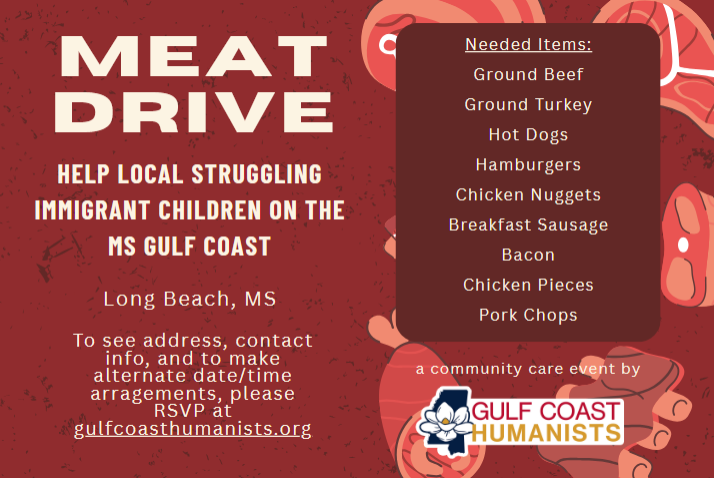 Dozens of MS Gulf Coast immigrants are struggling with food insecurity. Let's help feed the children some nutritious dinners. Please drop off the listed items on the day and time provided.