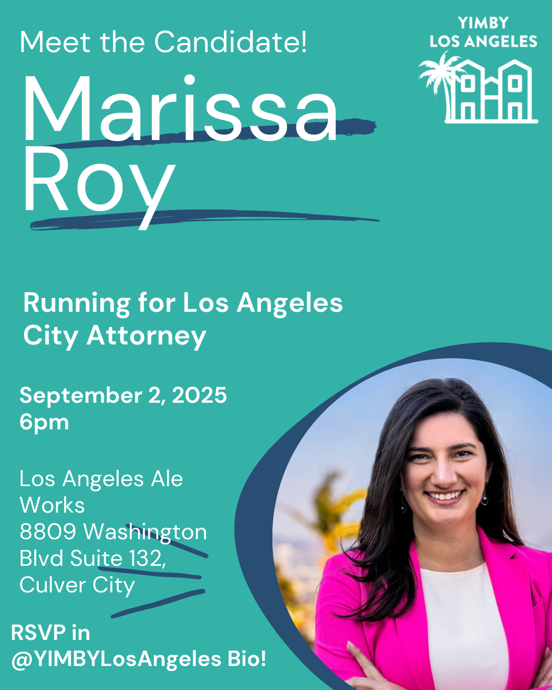 Join YIMBY Los Angeles for a meet and greet with Los Angeles City Attorney candidate Marissa Roy, a career public service lawyer and current Deputy Attorney General for the California Department of Justice!
