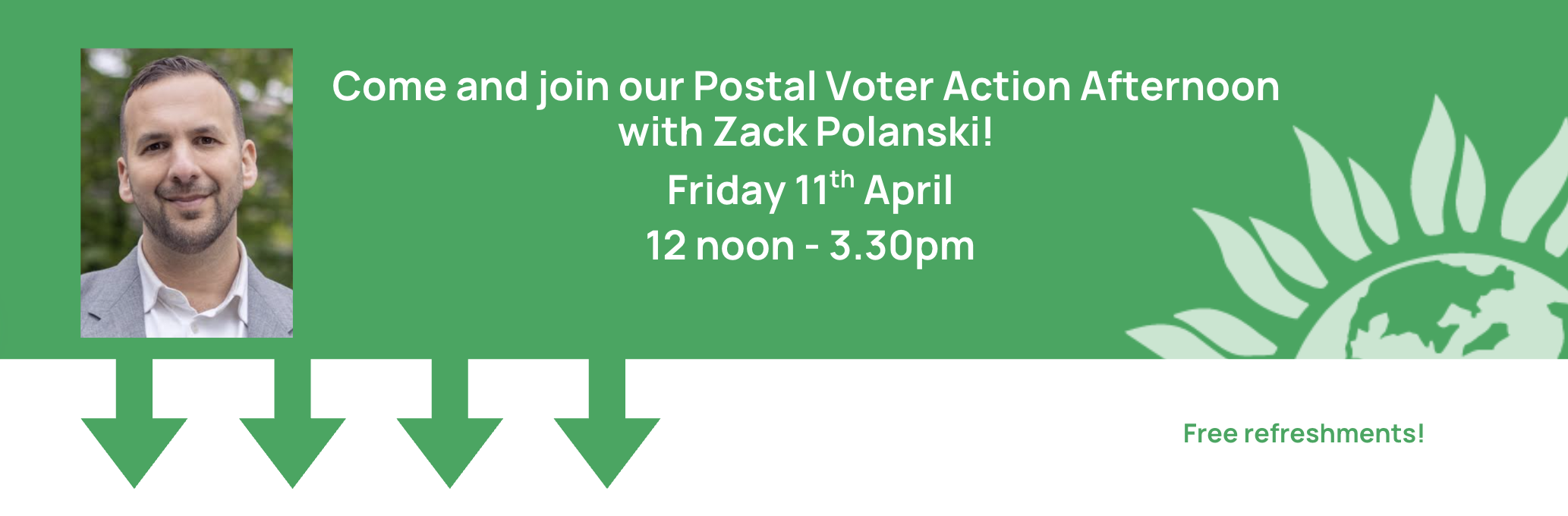 Join us on Friday 11th April for a special extra Postal Voter Action Afternoon with Zack Polanski - your help will make a real difference.