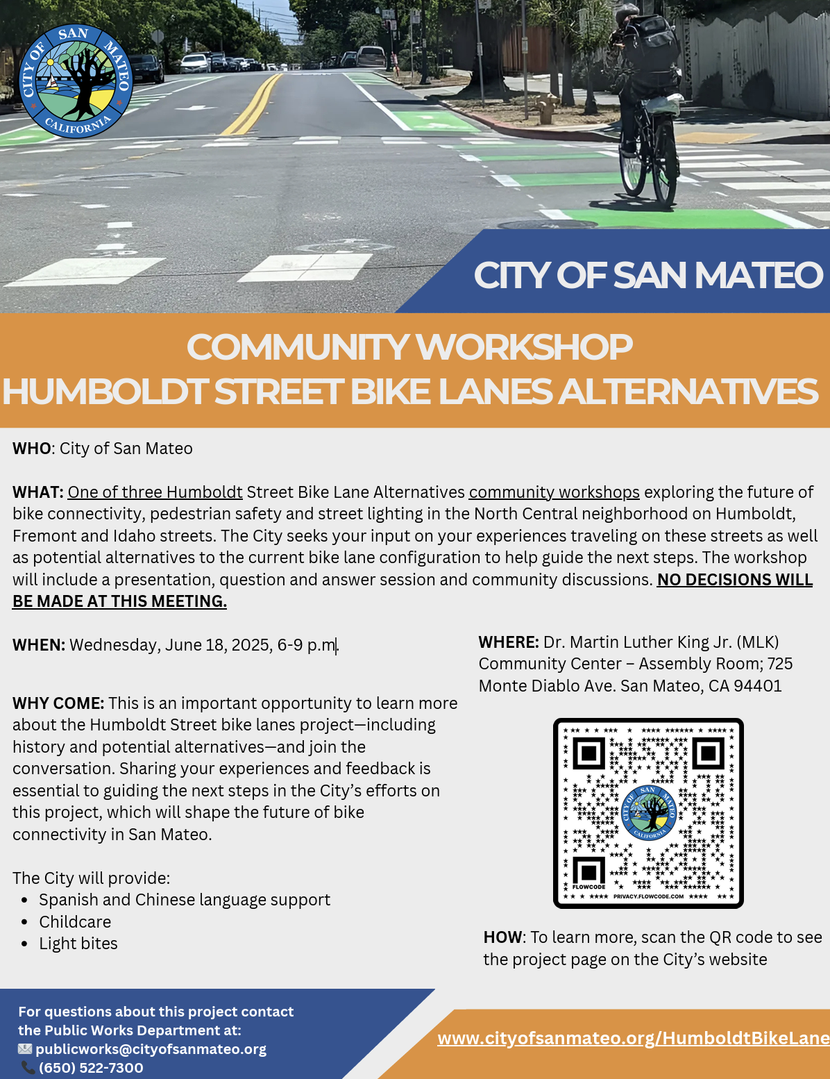 On Wed., June 18, the City of San Mateo will be presenting alternatives for the bike lanes that currently protect North Central residents, including kids attending multiple elementary and high schools. We need you to attend and let the City know that you oppose any expensive changes to the bike lanes that will result in less safe streets for residents.