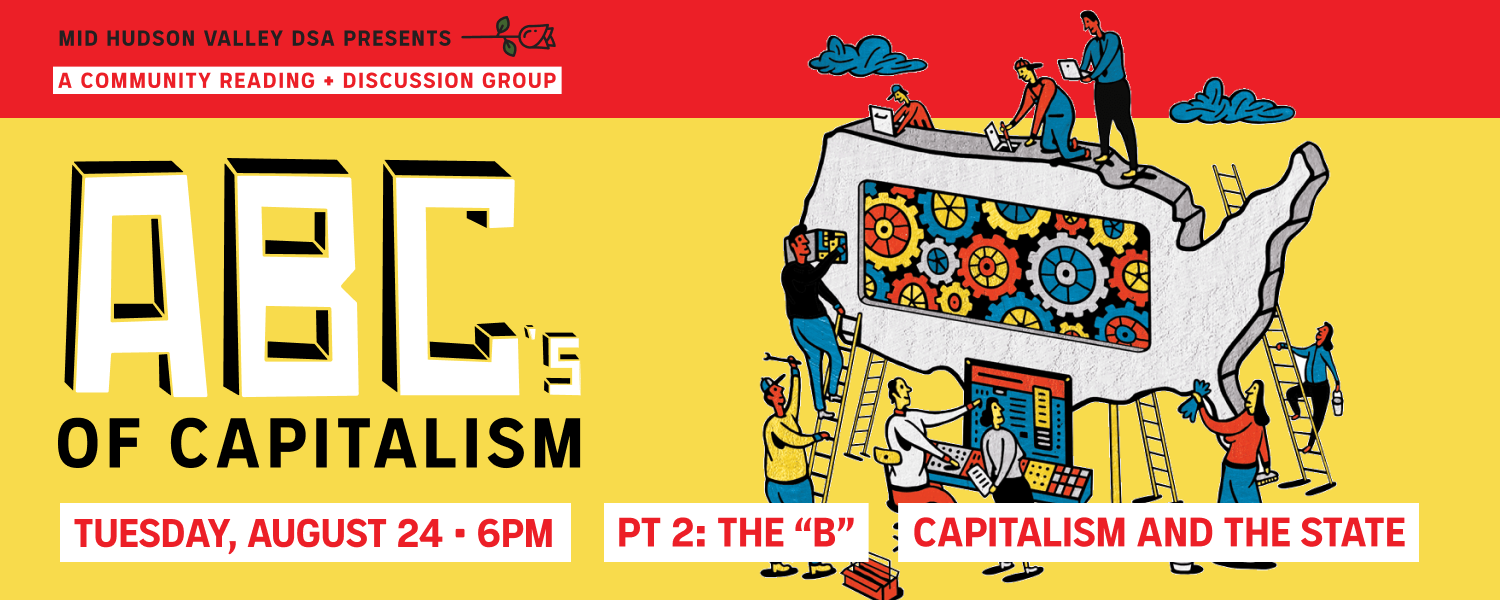Join MHVDSA’s Member Education working group Tuesday 8/24 at 6 pm on Zoom for a discussion on Understanding Capitalism Part B: Capitalism and the State by Vivek Chibber. This event is open to chapter members and non-members.