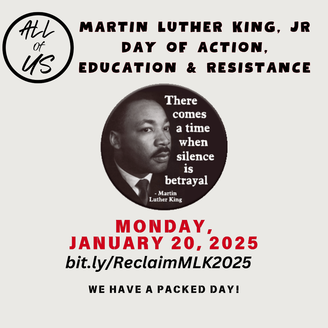Monday, January 20, 2025 is Martin Luther King, Jr. Day! MLK was a civil rights leader and a human rights leader. It is time to build on his legacy and fight for the humanity of all!!