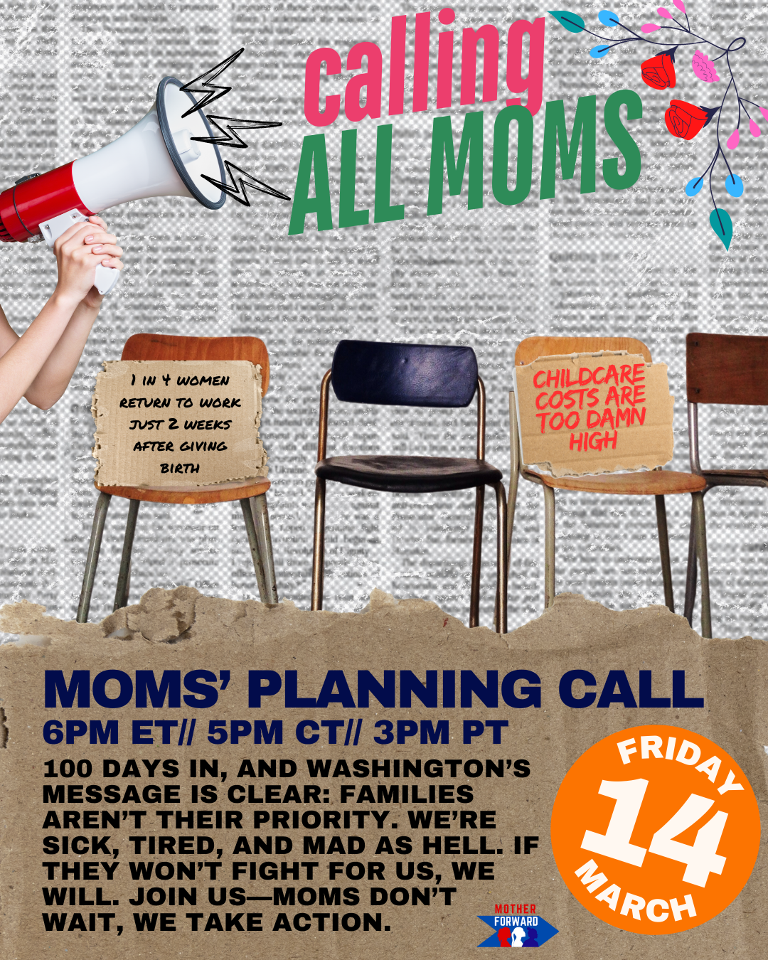 Since this administration started, it’s been heartbreaking for moms to watch cuts to Medicaid, SNAP, Head Start, and public schools—while child care costs skyrocket past college tuition in every state and 1 in 4 moms return to work just two weeks after giving birth. We’re left wondering: is anyone in office actually fighting for our kids’ future?