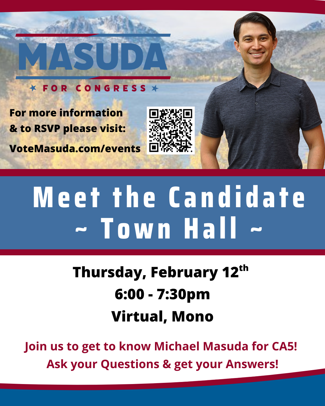 Masuda for Congress Meet the Candidate Inyo Virtual Town Hall on February 12th.