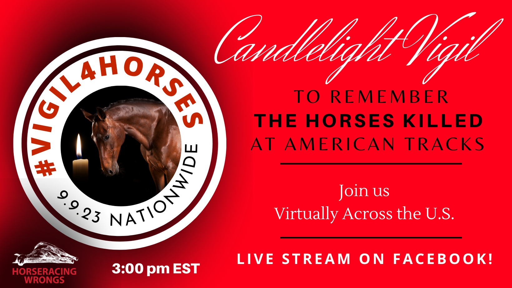 In our continued pursuit of our mission to end horseracing, the #Vigil4Horses aims to to raise awareness and honor the lives of horses killed for this industry and advocate for a future where every horse is treated with respect, dignity, and compassion. We invite EVERYONE to be a part of this global movement, joining us virtually to make a difference.