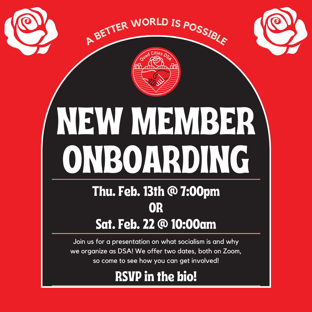 Are you a new member to the Quad Cities DSA? An old member who wants a refresher? Or just someone curious about what we are all about? Then this is the meeting for you! Learn the basics of socialism and how our chapters works.