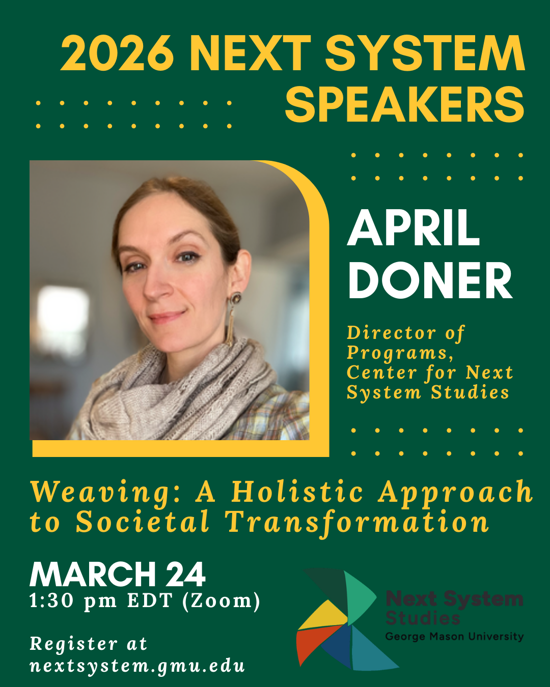 Next System Speaker Series - April Doner: A Holistic Approach to Societal Transformation