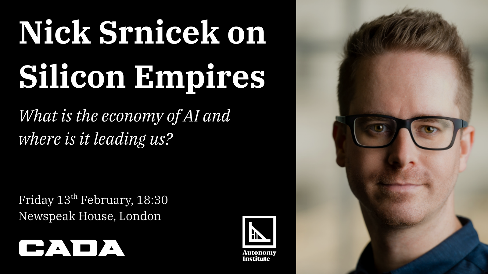 We’re excited to kick off our 2026 CADA event series by welcoming Nick Srnicek to discuss his most recent book Silicon Empires: The Fight for the Future of AI.