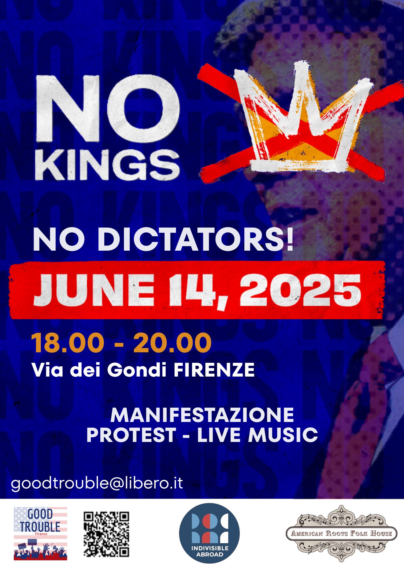 On June 14, Good Trouble Firenze will STAND UP - in solidarity with Indivisible Abroad, Democrats Abroad, concerned American citizens and allies in Florence and around the world. Bring your protest signs and join us for an evening of peaceful protest, live music, and resistance-building.
