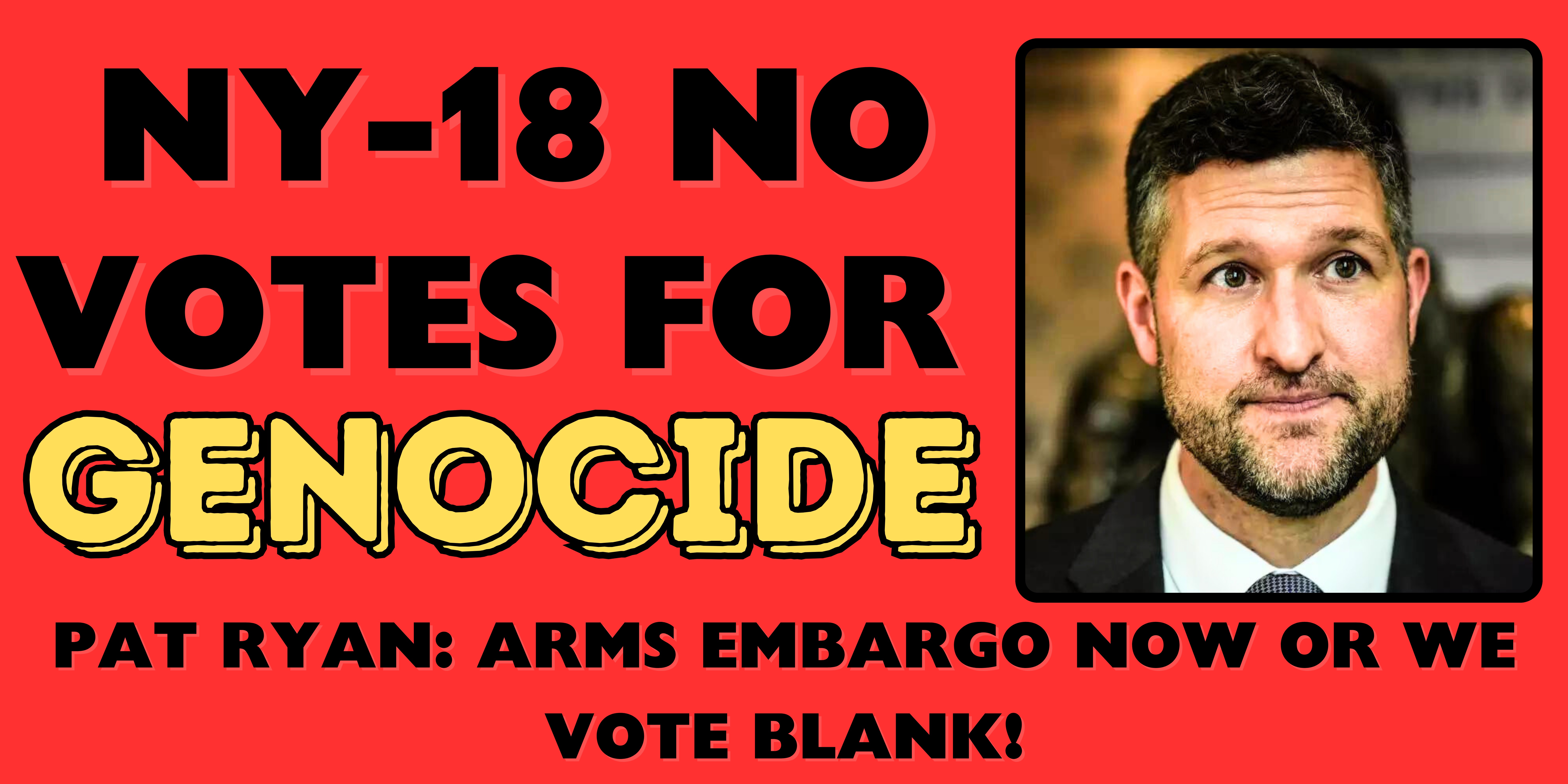 Join us this Sunday at 2 PM at 401 Washington St. in Newburgh for a march and rally. Tell Pat Ryan: No votes for genocide! Stop bombing Gaza and Lebanon! Arms embargo NOW!
