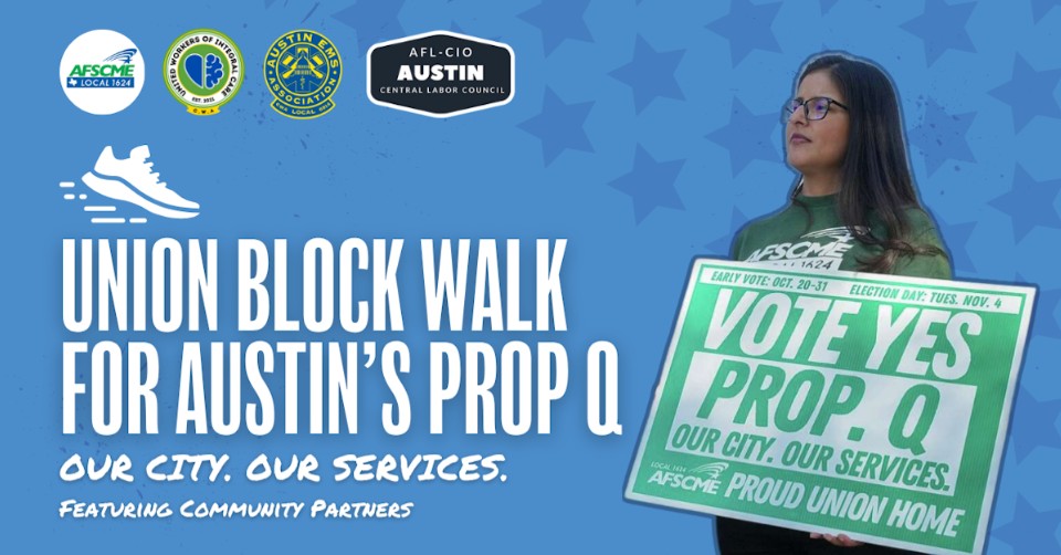 We’ll be walking together in support of Austin’s City services and the workers who keep them running — from our parks and libraries to our health, water, and energy services.